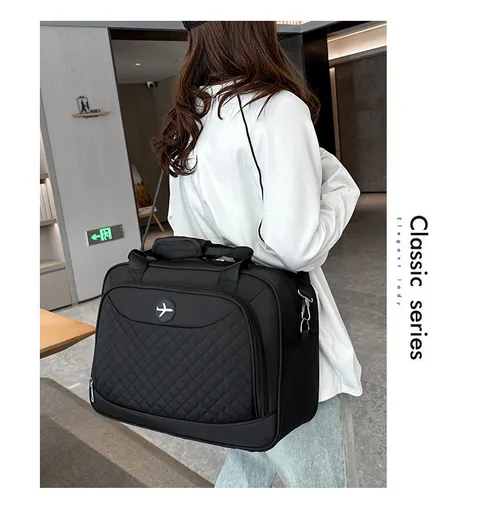 Short-distance luggage backpack, women's embroidered checkered fashionable sports and fitness bag, dry and wet separated leisure travel bag